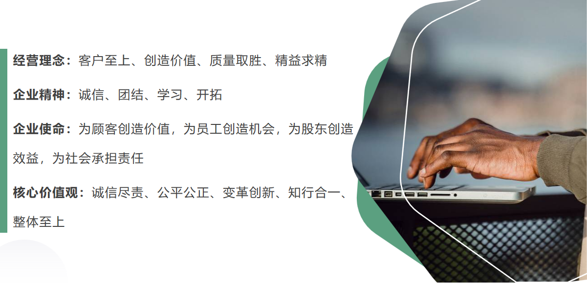 九恒自創(chuàng)立以來,積極倡導建設(shè)“以人為本”的企業(yè)文化,經(jīng)過多年的實踐和探索,構(gòu)建具有九恒特色的企業(yè)文化,根據(jù)企業(yè)的經(jīng)營理念,以精神方面、行為方面、管理方面、文化方面全方位滲透并予以實施。