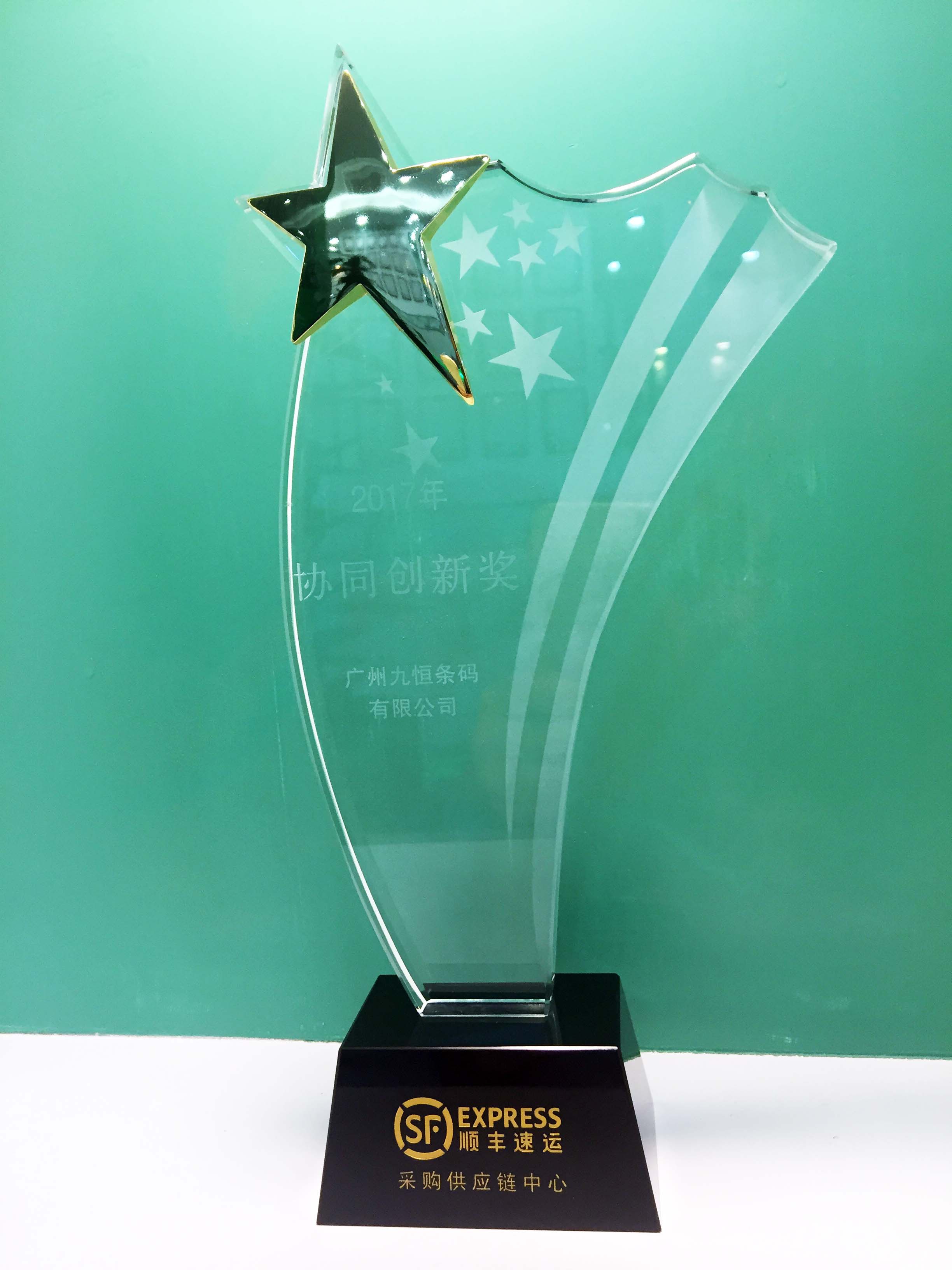 近日,九恒條碼作為順豐集團的供應商,獲得了順豐頒發(fā)的2017年度協(xié)同創(chuàng)新獎杯。多年來九恒憑借對客戶需求的精準觸達和對產品的不斷優(yōu)化創(chuàng)新,得到了客戶的廣泛認可和贊譽。