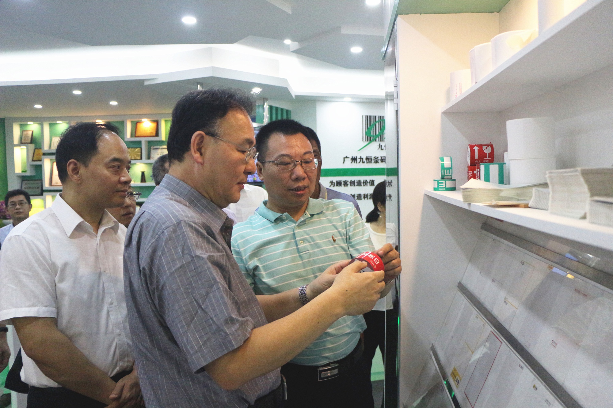 為詳細(xì)了解九恒的產(chǎn)品創(chuàng)新情況,馬局長(zhǎng)首先來到九恒展廳參觀,沈董事長(zhǎng)向馬局長(zhǎng)一一介紹了公司的新產(chǎn)品及各類產(chǎn)品所占市場(chǎng)份額等情況,馬局長(zhǎng)對(duì)九恒研發(fā)的無底紙標(biāo)簽、無紙芯管標(biāo)簽等綠色減量化產(chǎn)品表現(xiàn)了深厚的興趣,同時(shí)對(duì)九恒只做高端可降解膠袋、不做“有氣味”的低端塑料袋表示贊賞。